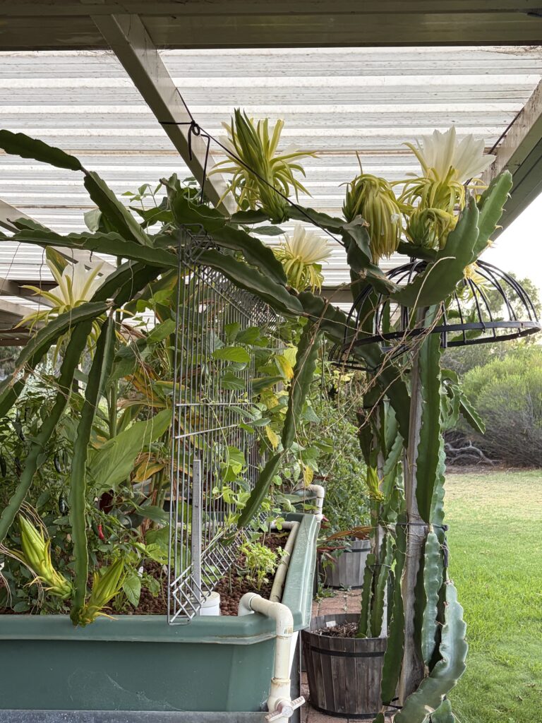 Wow! Success! We harvested 14 dragon fruit, and they were delicious! It was a bit of a waiting game to work out when to pick the first one, as we were unsure of the variety.