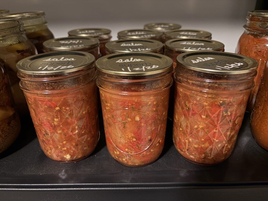 Of course, and the food we produce is shared amongst family and friends, as well as preserved for future enjoyment. There are jars of dairy free pesto in the freezer; green relish, sweet chilli sauce, lime chutney and kasundi in the produce room; and yet more pickled eggs in the fridge!