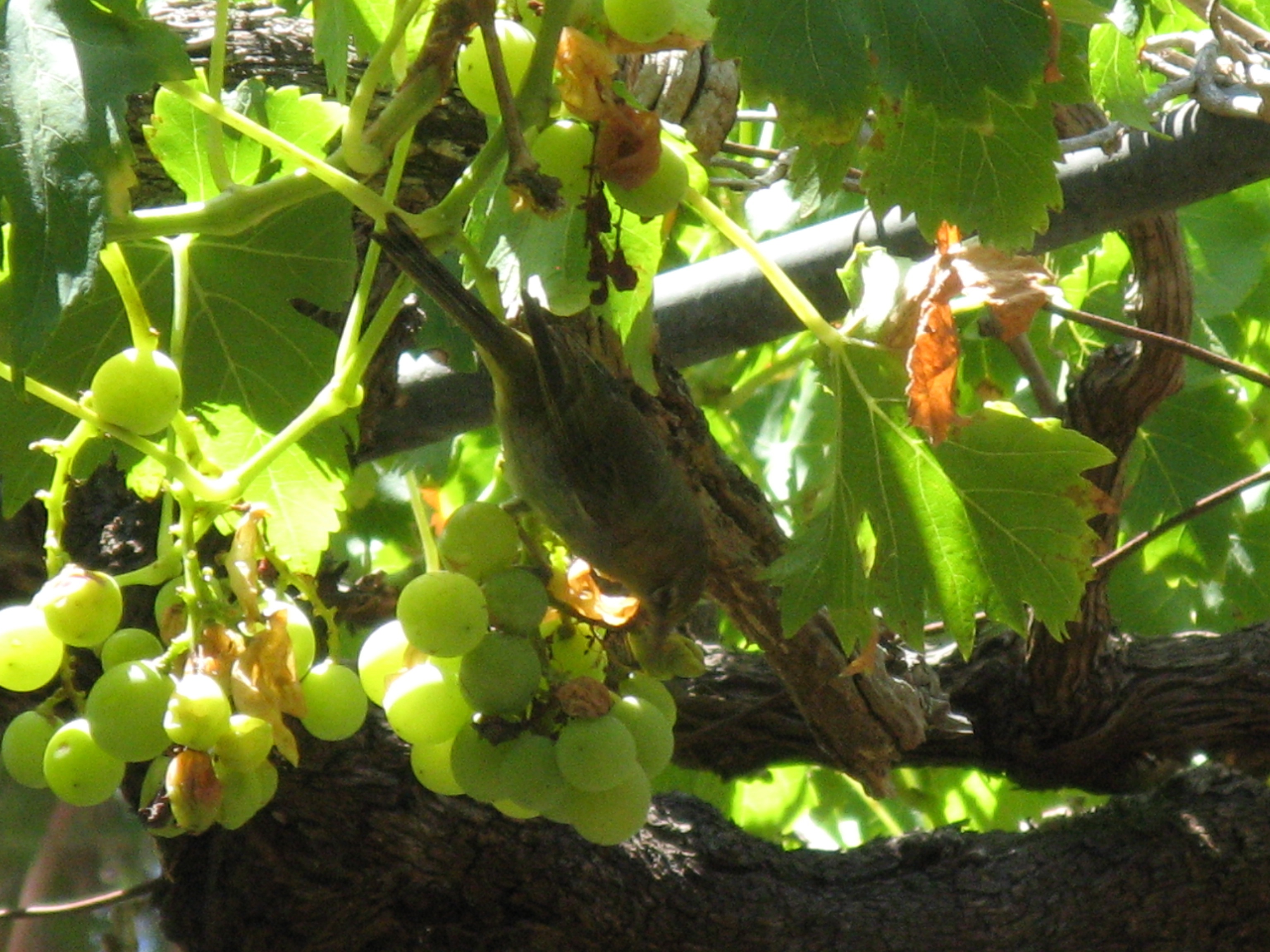 Even the lovely little Silver-eyes soon destroy a nice bunch of grapes if they aren’t netted!